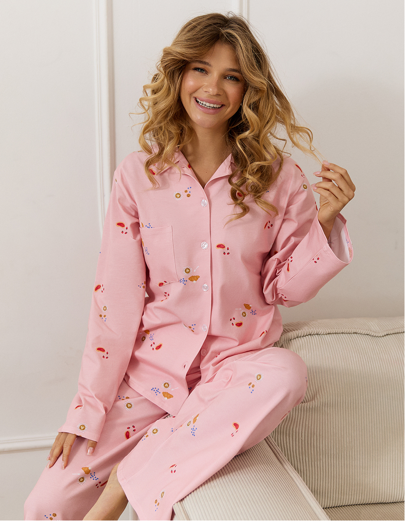 —   Пижама Завтрак с рубашкой и брюками розовая